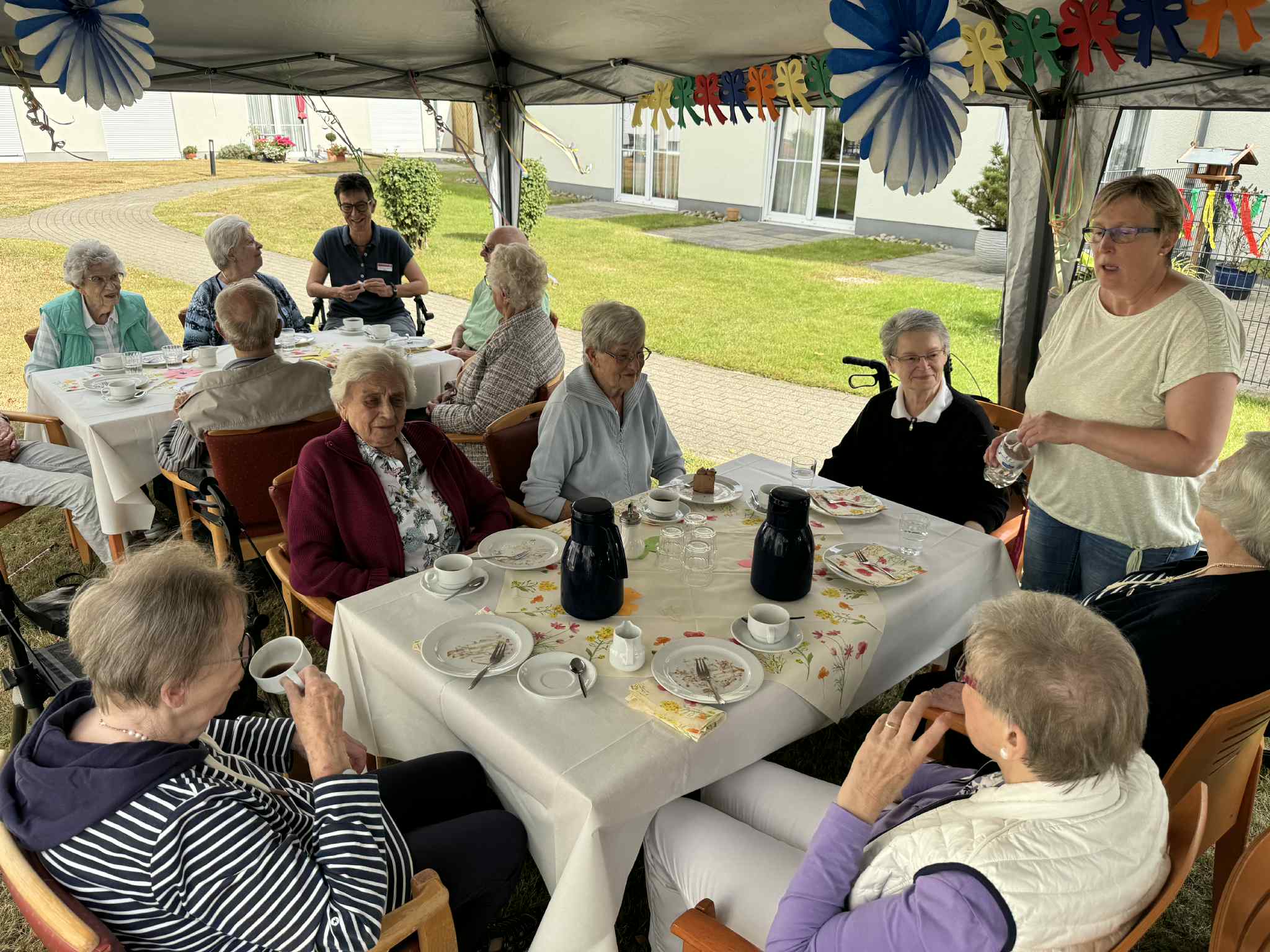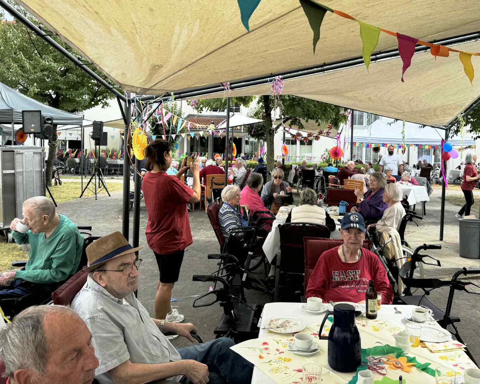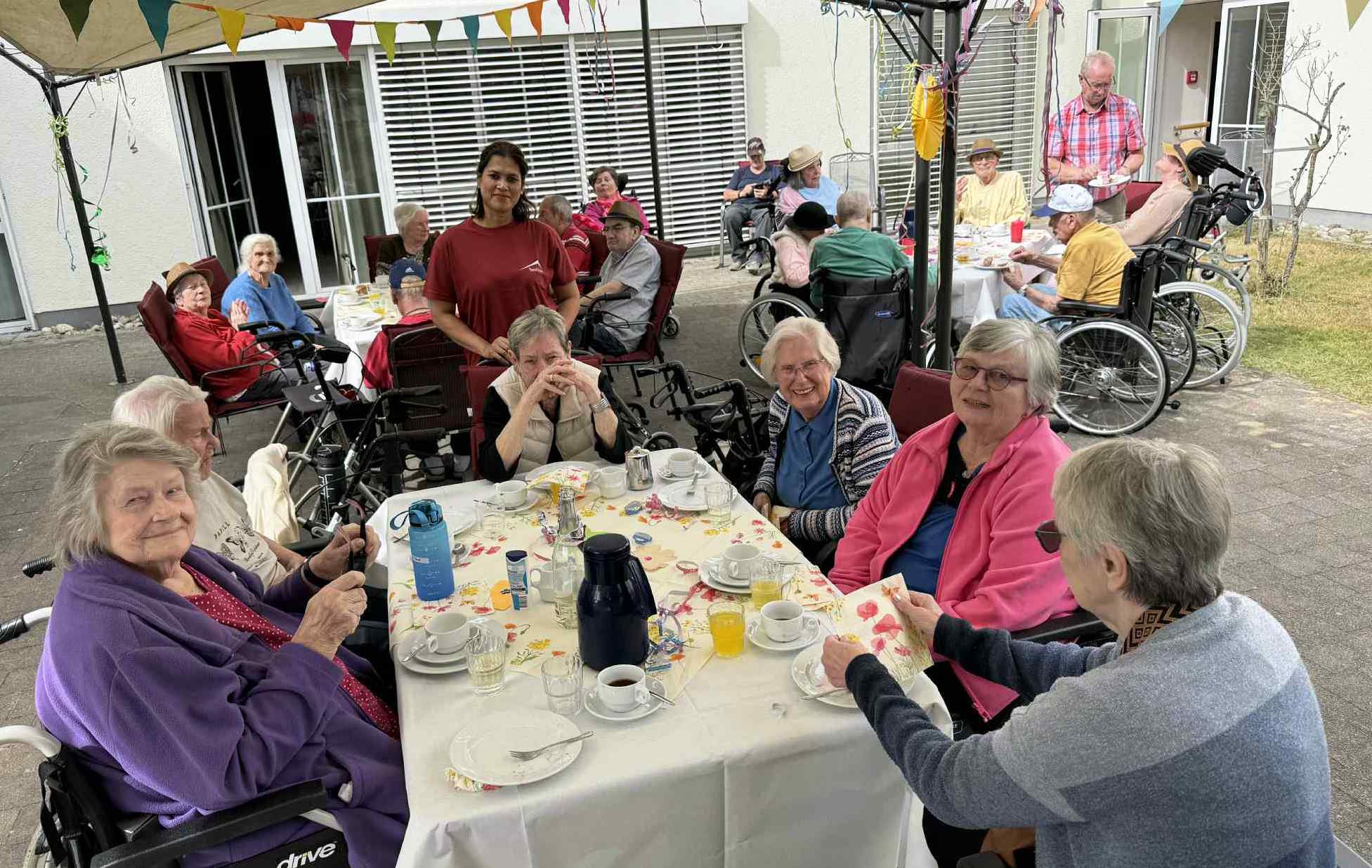 In unserem SenVital fand kürzlich das beliebte Sommerfest statt. Stimmungsvolle Schlagermusik lud zum Schunkeln und Mitsingen ein, dampfender Kaffee und köstliche Torten sorgten für strahlende Gesichter in unserem schönen Innenhof. Und zum Abendessen gab es dann, wie von unseren Gästen gewünscht, herzhafte Grillbratwürstchen und Pommes, dazu ein Gläschen Sekt oder Bier. Eine rundum gelungene Feier für alle, richtig schön.